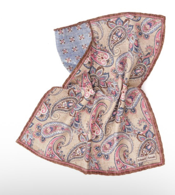 Beige Paisley/Floret Neat Reversible Pocket Square