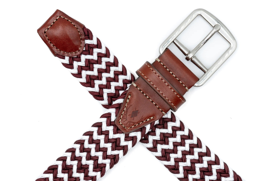 Collegiate Newport Woven Italian Rayon Elastic Belt - Garnet/White / 34