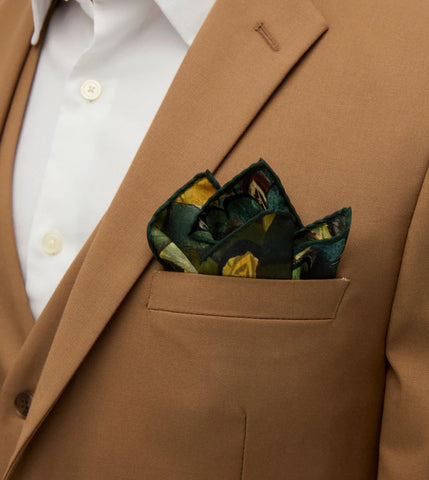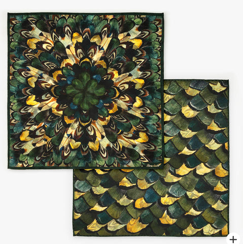 The Mast Pocket Square brings refined elegance to any look with a nod to the natural world. Crafted from 100% silk, this piece features a rich green base adorned with an intricate pheasant feather print, inspired by Brackish’s signature use of natural materials. Lightweight and smooth to the touch, Mast delivers both luxury and versatility - perfectly suited for formal occasions or everyday sophistication. Whether tucked into a blazer or layered for added texture, it’s a statement rooted in nature and elevated by design.
