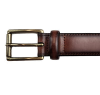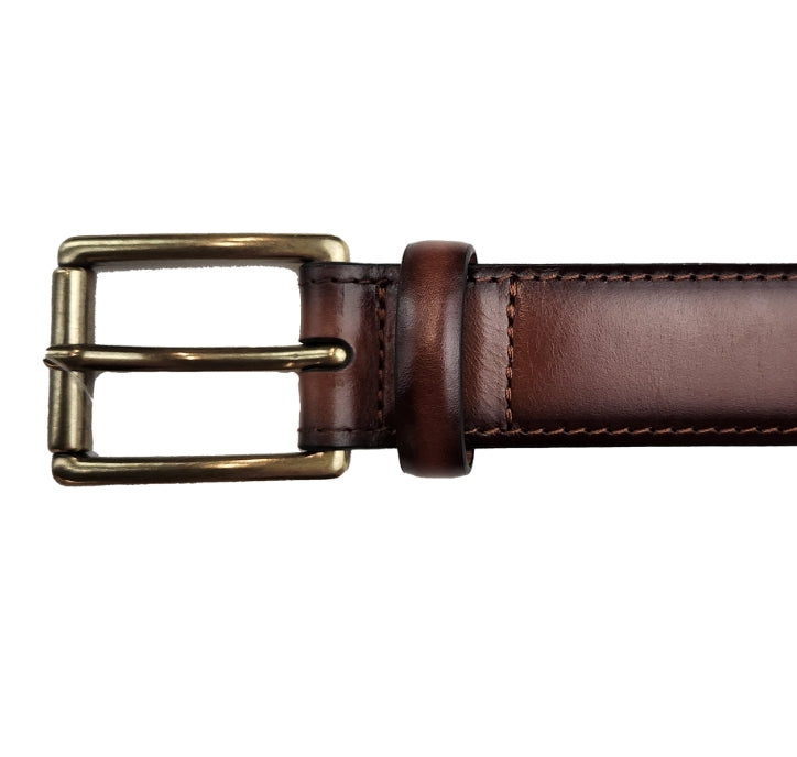 •An updated design with intriguing edging for subtle style.•Genuine leather.•Antiqued-brass buckle.•1 3/8 in. W.