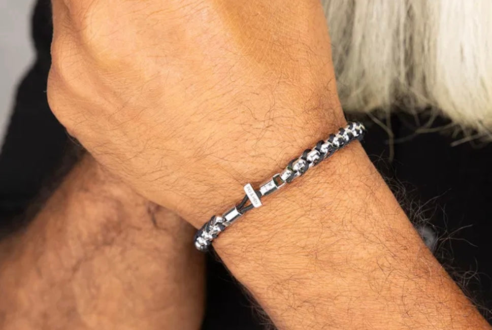 Catena Venetian is a stylish and durable piece of jewelry. This box chain bracelet is made from high-quality, marine-grade stainless steel and the strongest type of nautical rope. The chain links are tightly woven together, giving the bracelet a sleek, streamlined appearance. Is wear-resistant and does not tarnish.