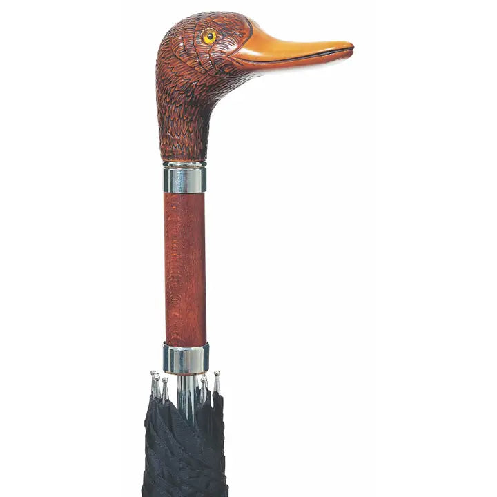 Mallard umbrella, Italian handcrafted handle set on a self opening 25 X 8 frame with sheath for storage.