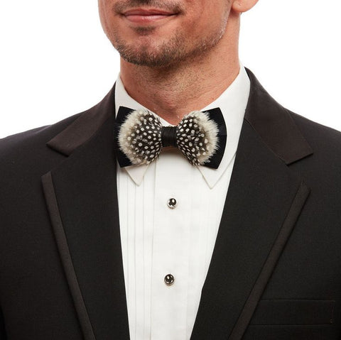Inspired by one of our best-selling ties, the Drifter combines goose, guinea, and rooster feathers for a chic and modern update to your black-tie style.