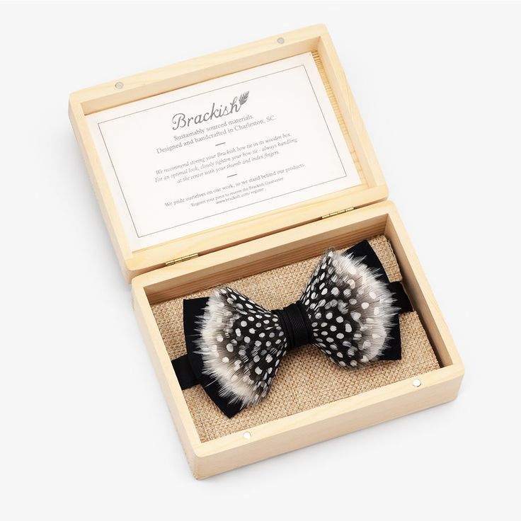 Arrives in a hand-branded, pine gift box. Includes a list of the feathers used and instructions on how to care for your tie.