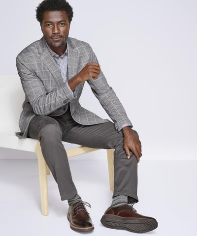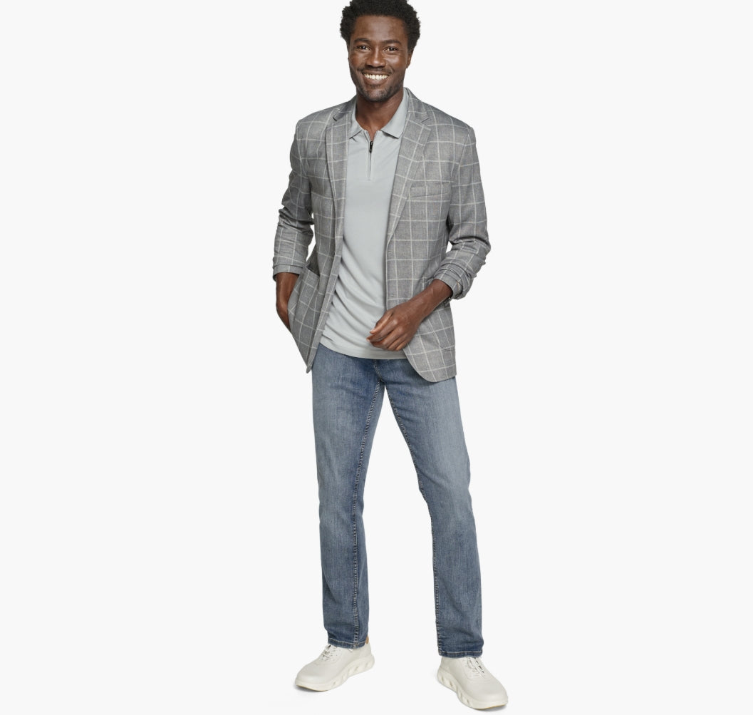 The tailoring of a blazer with the comfort of a cardigan. •Unlined and unstructured in a soft, stretch knit. •Notched lapels. •Two-button closure. •Welt chest pocket with tuck-away pocket square; front patch pockets. •Working buttons at cuffs for a casual, roll-up option. •Double back vents. •Two interior welt pockets. •53% Cotton/ 37% Rayon/ 10% Nylon. •Dry Clean only. •Imported.