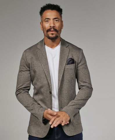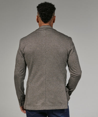 A contemporary blazer crafted from a soft fabric displaying a classic houndstooth pattern. Features notch lapels, patch pockets, and a built-in pocket square. This classic piece boasts a tailored silhouette that sculpts the frame with a sleek, modern edge.