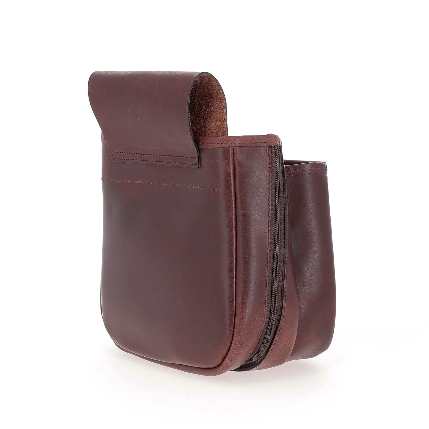 Made with our signature full-grain American origin leather, our shotgun shell holder is built to hold both your ready and spent shells in separate pockets. Convenient bottom zip in one pocket to release your spent shells. This leather shell pouch is designed to slide over your standard belt of choice (not included).
