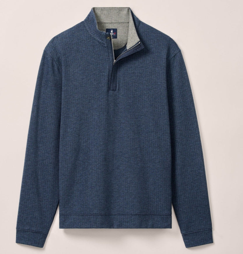 Taking cues from classic sportswear, this 1/4 zip is knit with a luxe blend of cotton, cashmere and stretch in a herringbone pattern that your finest sportscoats would kill for. For the true garment aficianados we used a circle knit which really elevates the feel and finished the piece with alcantara suede trim—a favorite of ours that is often found in sportscar interiors.