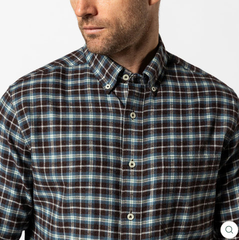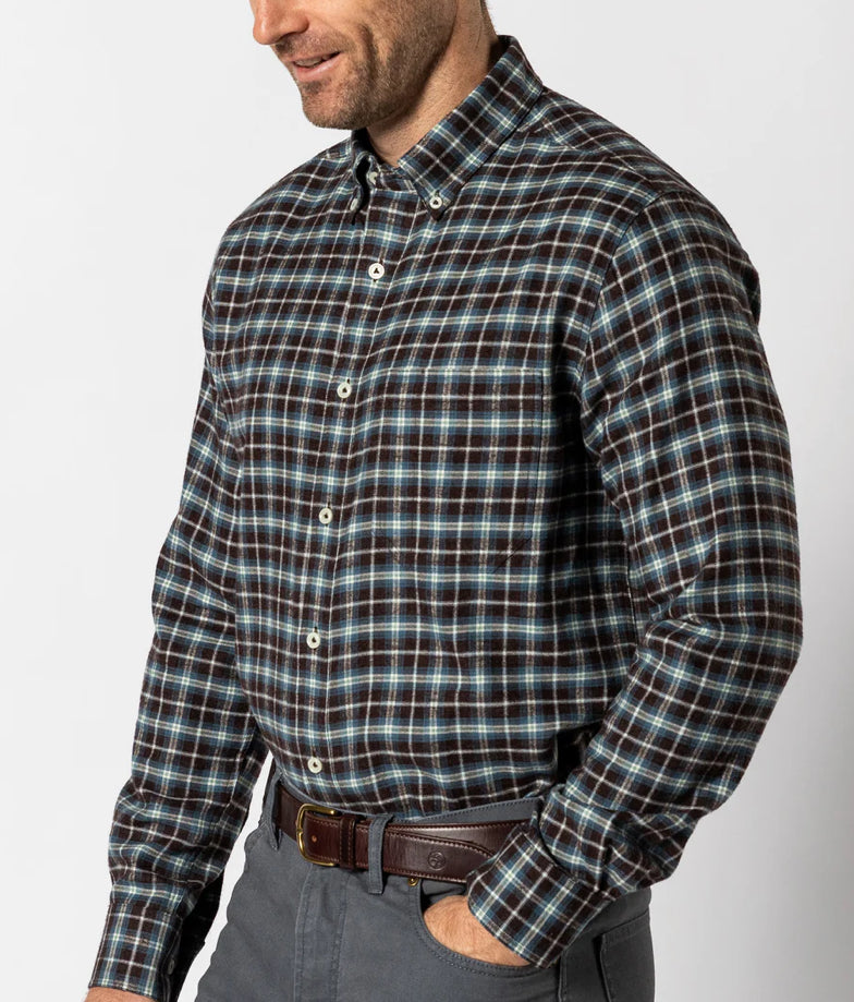 Cotton Flannel Sport Shirt - Calvin Plaid - Dark Brown Heather / Medium