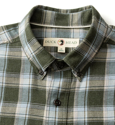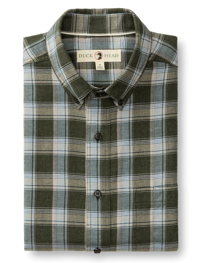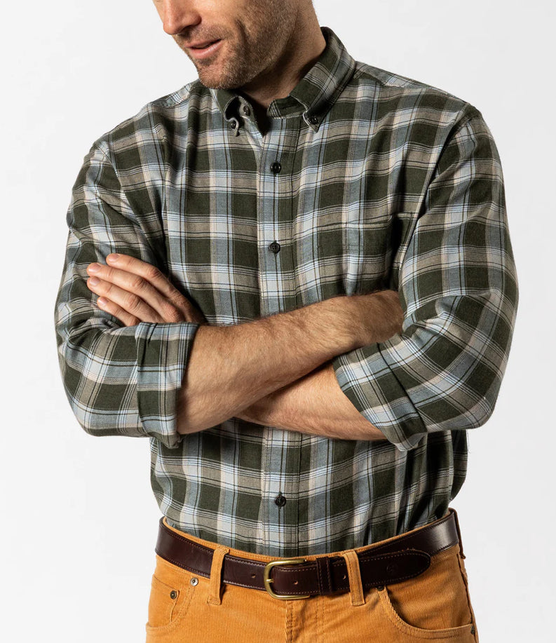 Cotton Flannel Sport Shirt - Hank Plaid - Deep Olive Heather / Medium