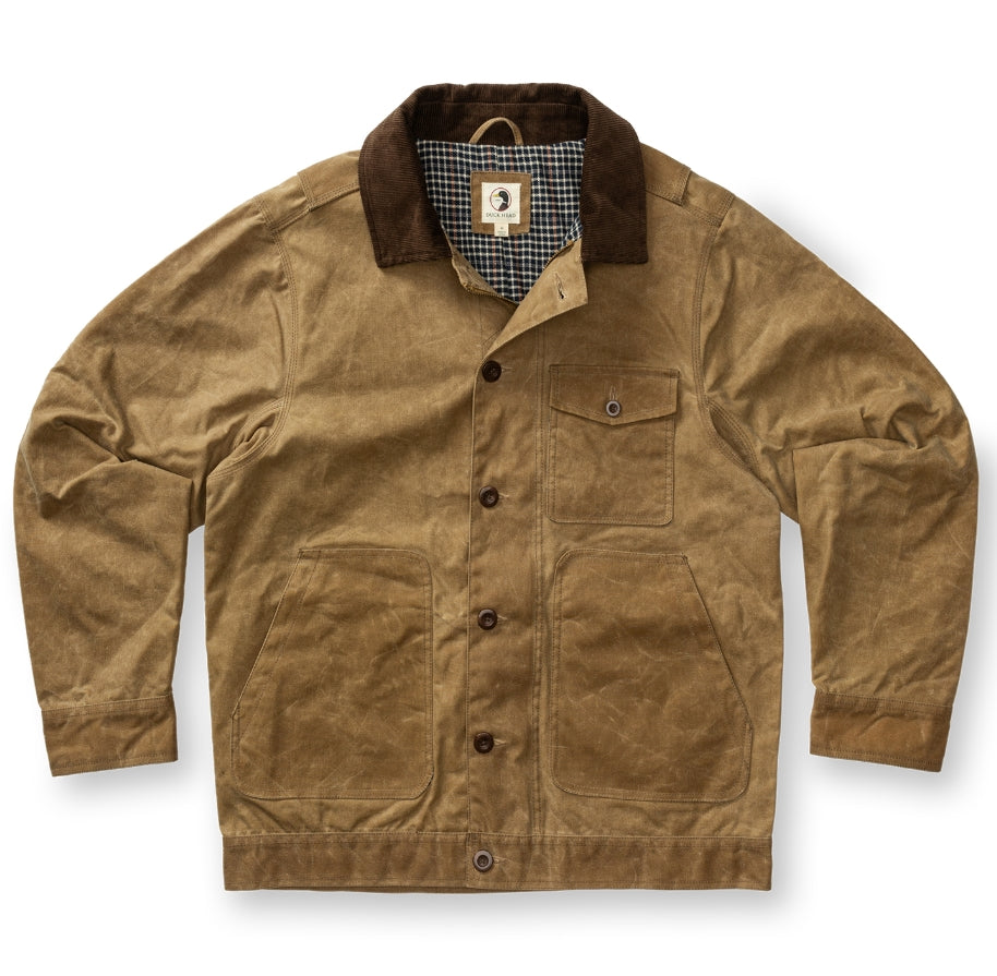 In 1865, Duck Head was born when our founders turned durable army tent canvas—known as duck cloth—into hardworking garments. Today, we carry on that legacy as the “Original Canvas Clothier” with the Waxed Duck Canvas Rancher Jacket. Crafted with a water-resistant wet wax finish and coated backing, it develops a rich patina right from the start and stands up to the toughest elements. Designed with an action back and articulated elbows for unrestricted movement—whether hauling gear or splitting firewood—and underarm grommets for added breathability when the work heats up. Flannel lining and a corduroy collar complete this rugged, heritage-inspired jacket.