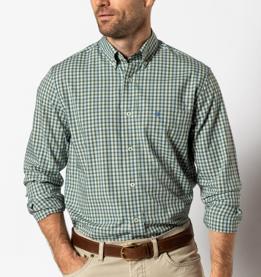 Fallon Plaid Performance Poplin Shirt - Duck Green / Small