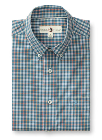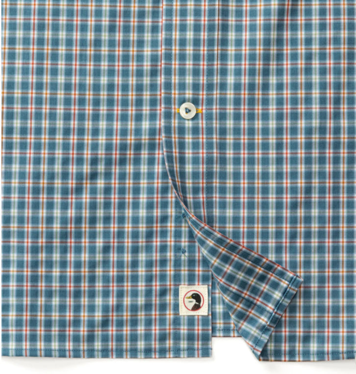 Performance Poplin Sport Shirt - Fallon Plaid - Teal Blue / Medium