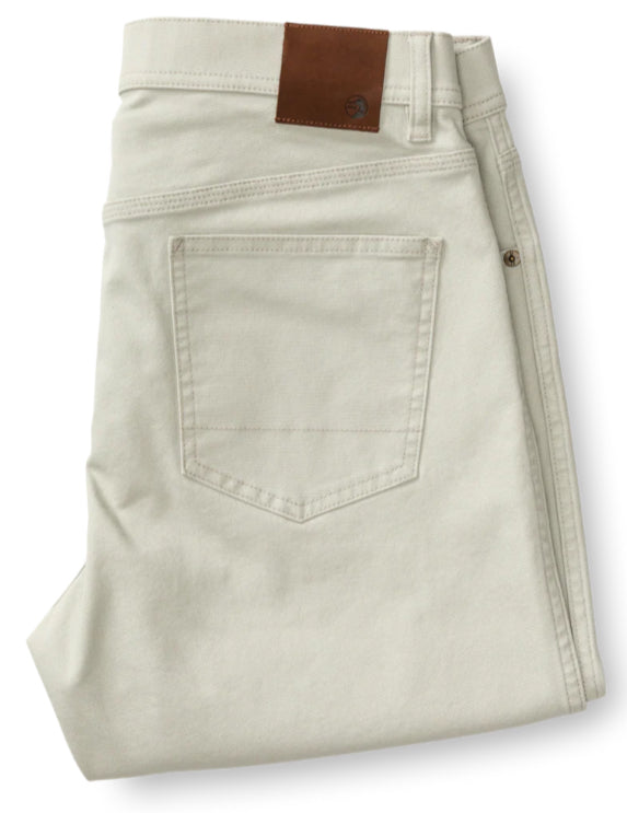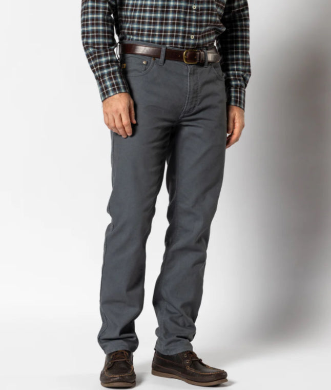 Our Field Canvas Five-Pocket taps Duck Head's rich 160-year history in both spirit and design. Familiar are the signature details borrowed from our Gold School Chino to include branded buttons, leather patches, and fortifying tacks. The 9.4 oz canvas functions with 2% flex through key stress points while being slightly heavier than our traditional 7.1 oz Pinpoint Canvas Five-Pocket. A proprietary fabrication assists in regulating the temperature of the wearer by keeping cool in the heat but warm during cooler temperatures. The classic fit mirrors the Gold School Chino and wears perfectly with a boot, shoe, or loafer.