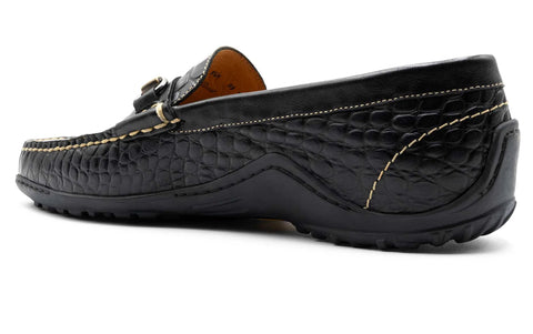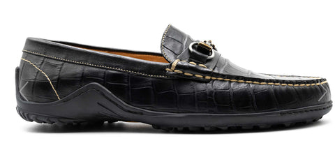 Alligator Grain Leather Horse Bit Loafers - Black / 9