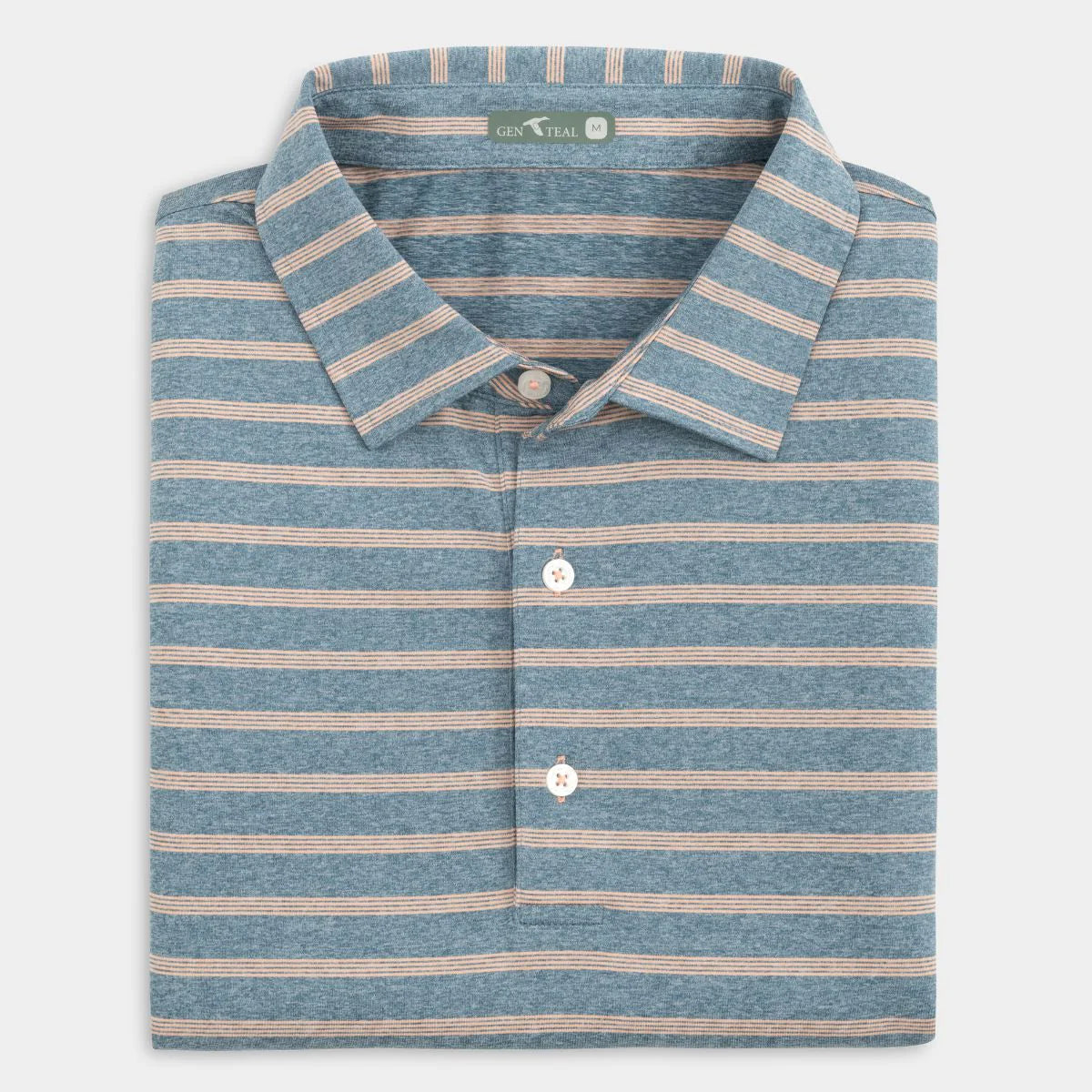 The Fulton Performance Polo features our signature performance material in a unique, heathered stripe. Finished with a high-density, heat-transfer duck logo at the back neck, this polo offers moisture-wicking comfort, stretch for ease of movement, and a classic fit designed for all-day wear.