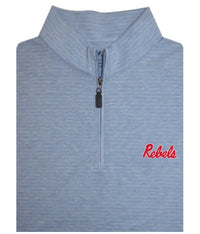 Rep the Rebels in timeless style with the Ole Miss Serenity Soft Blue Striped Pullover. This lightweight yet warm pullover features a heathered end-on-end fabric that delivers a soft, premium feel with added texture. Embroidered with the classic Ole Miss script logo, this piece blends tradition and performance for game day and beyond. The quarter-zip design with a coordinating blue zipper and interior trim adds a touch of sophistication, making it perfect for layering over polos or wearing solo. Whether you're in the Grove or on the go, this pullover brings comfort, class, and Rebel pride wherever you wear it!
