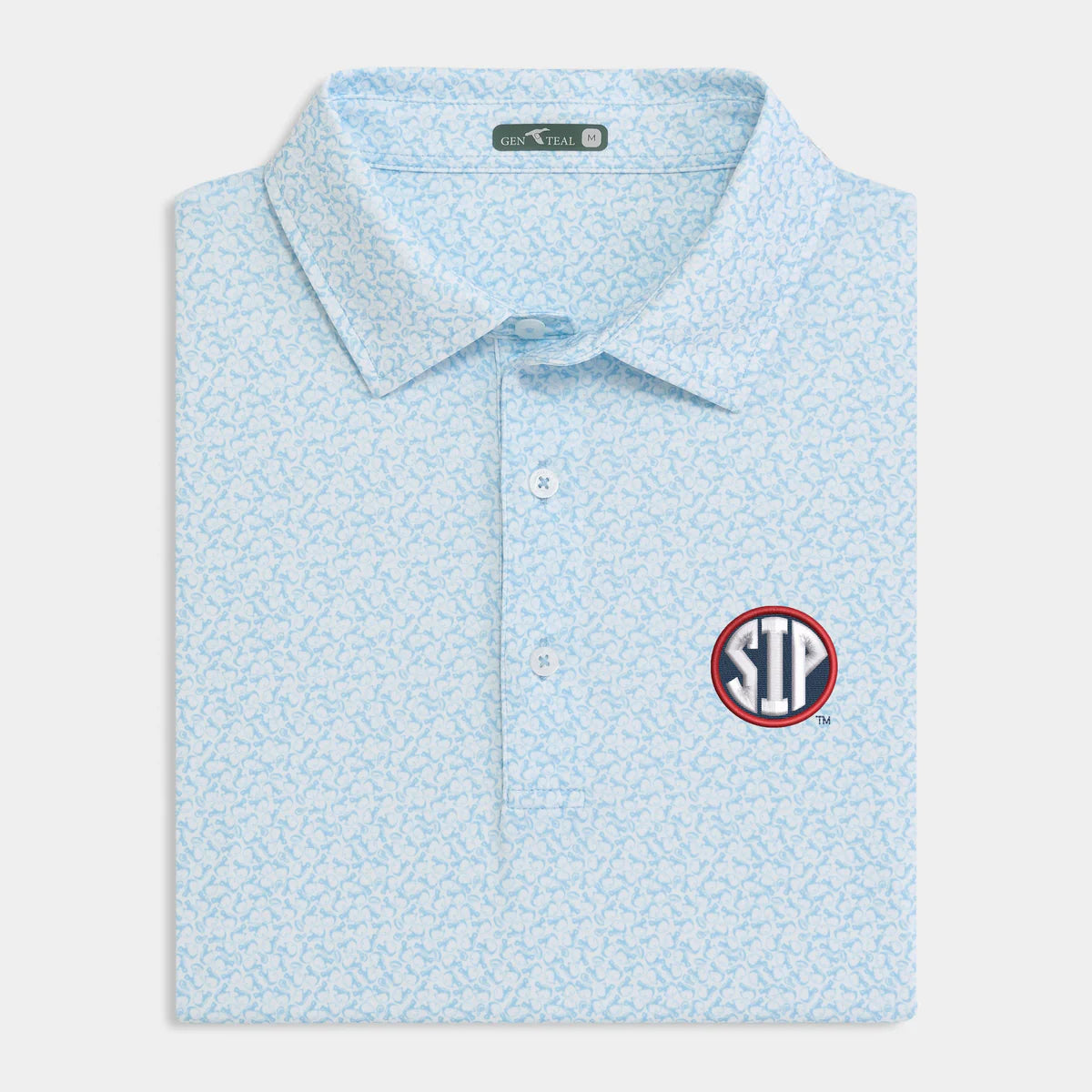 The Helmet Havoc Printed Polo features a geometric pattern of football helmets, perfect for fall game days. Crafted from our signature performance fabric with moisture-wicking technology and comfortable stretch for versatile, all-day wear.