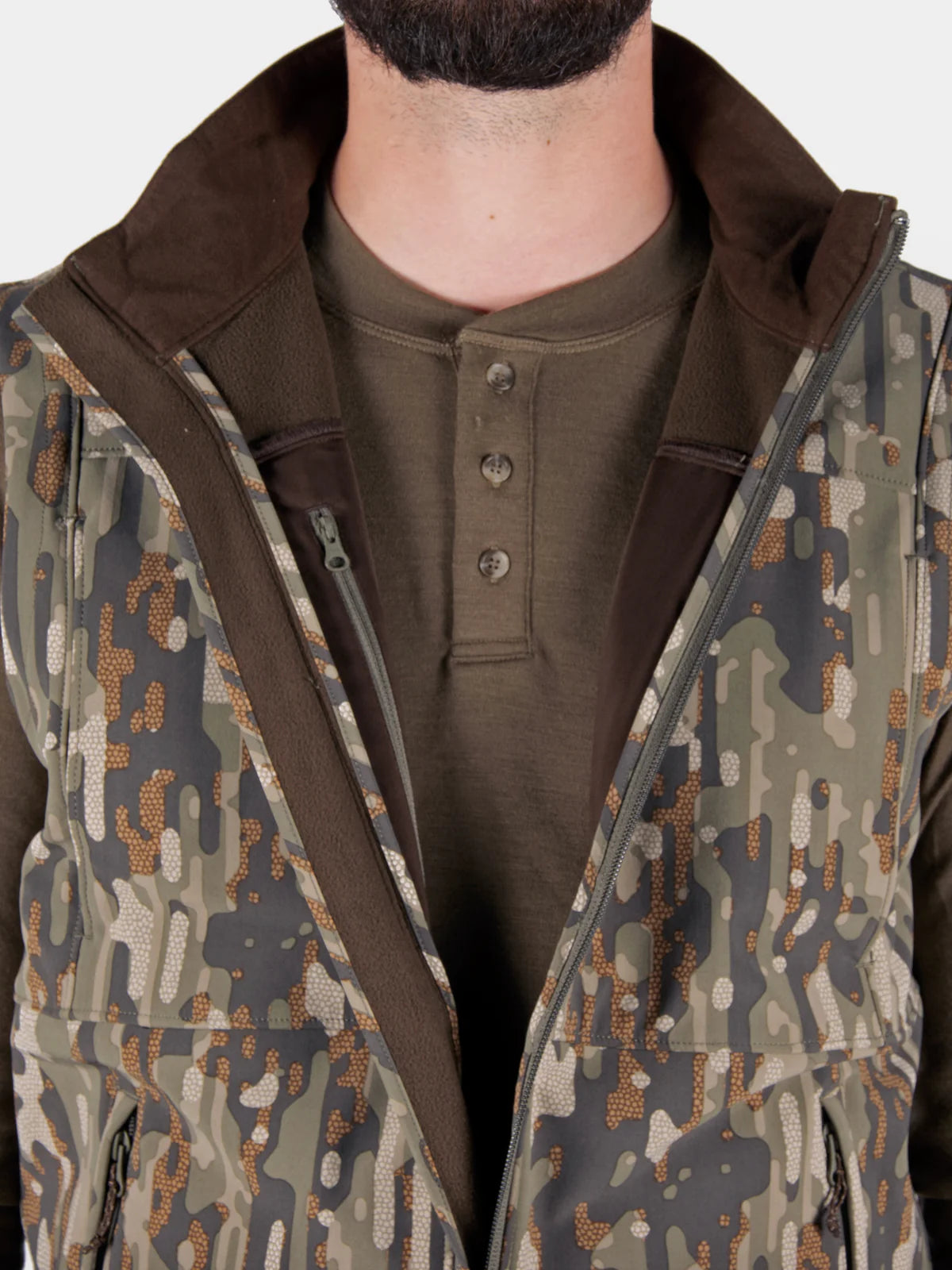 Ideal layering option for your cooler hunts with quiet softshell fleece fabric to keep your core warm.