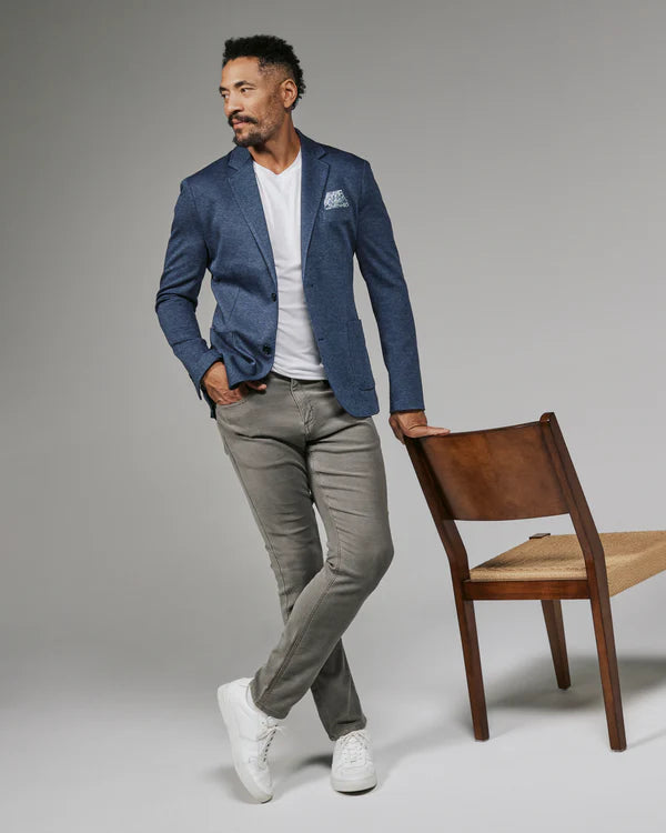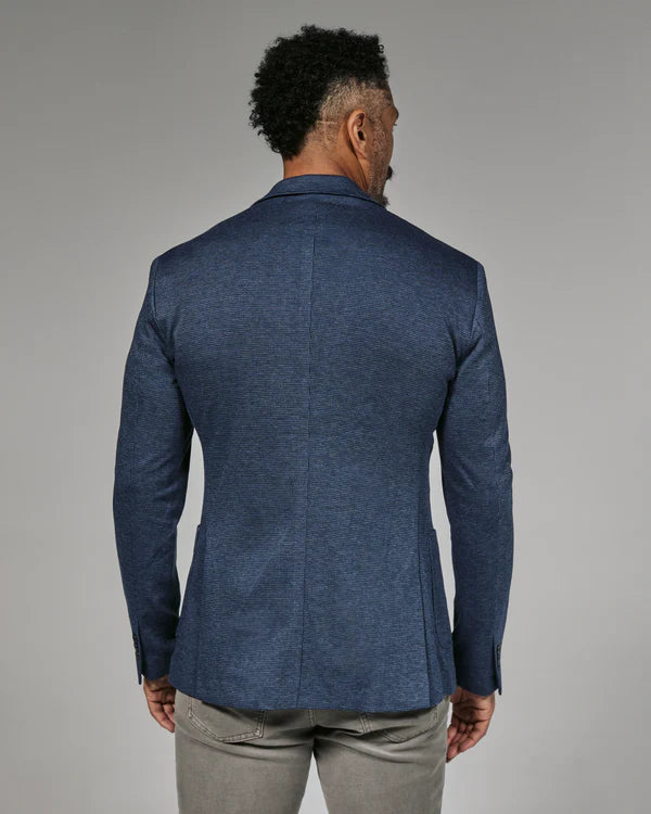A contemporary blazer crafted from a soft fabric displaying a classic houndstooth pattern. Features notch lapels, patch pockets, and a built-in pocket square. This classic piece boasts a tailored silhouette that sculpts the frame with a sleek, modern edge.