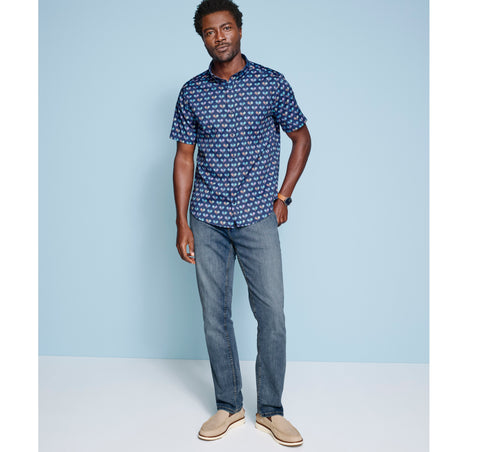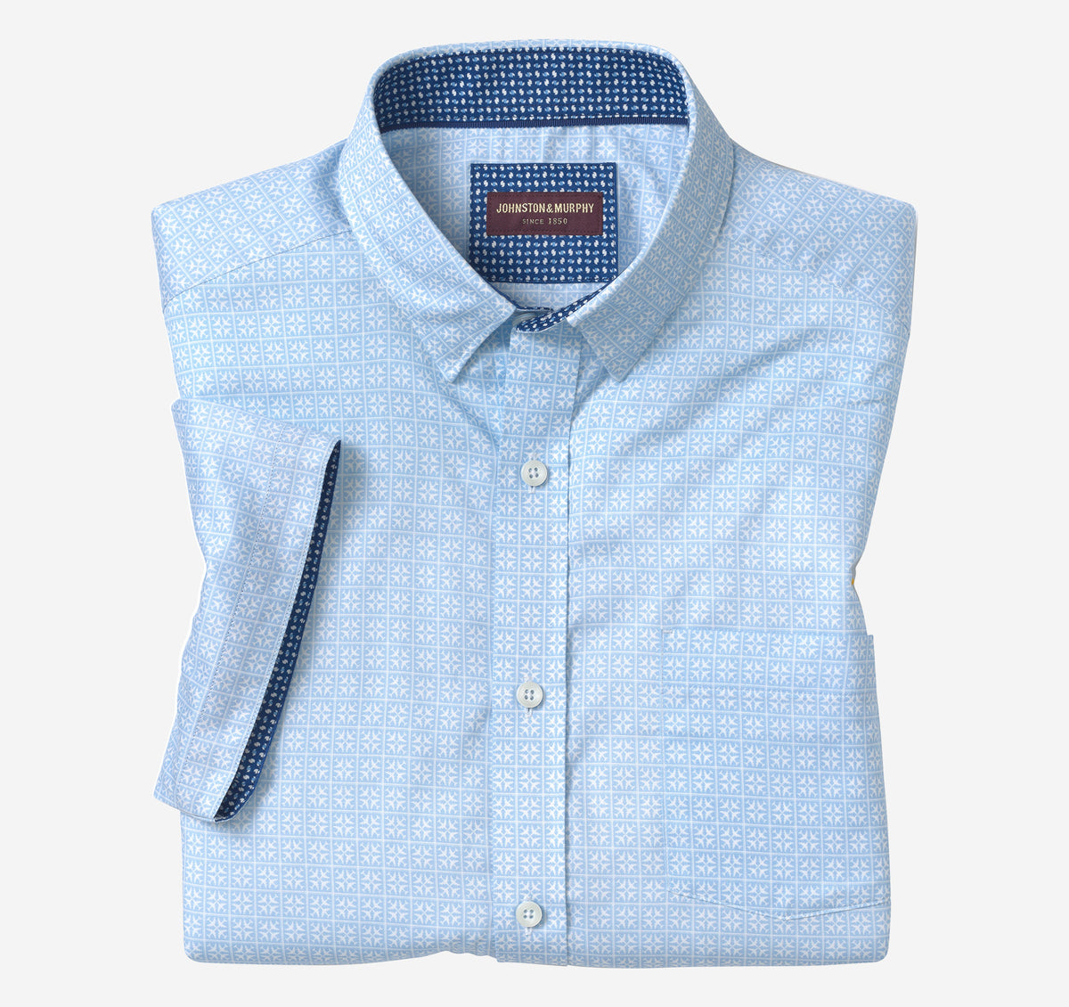Printed Short-Sleeve Shirt - Light Blue Airplane Grid / Medium