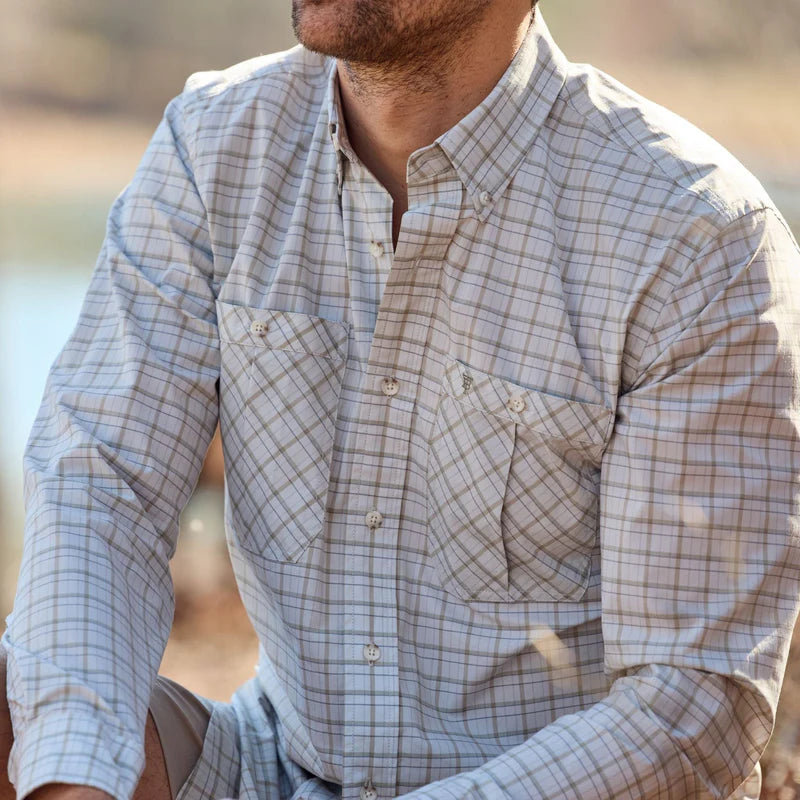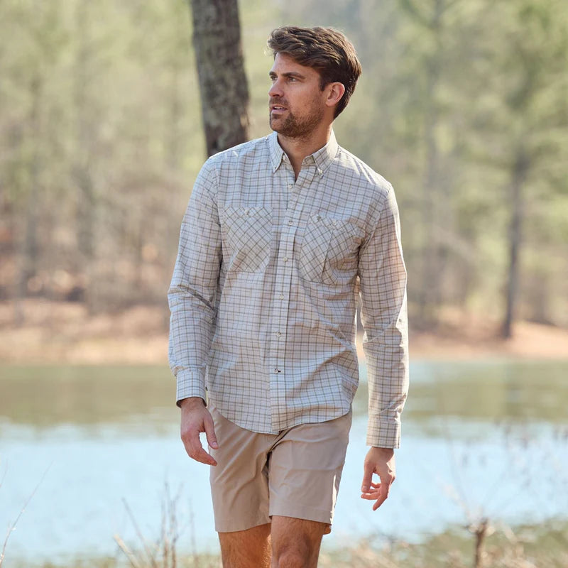 Available in a variety of outdoor-inspired solid colors and patterns, the Tidewater long sleeve shirt is complete with a nod to our roots: a contrast bottom button hole inspired by Alabama red clay.