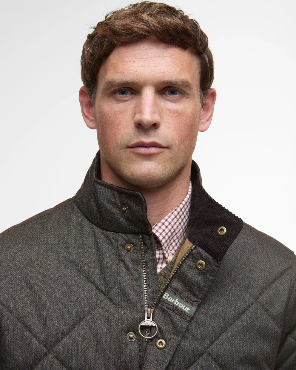Stay warm this winter with the Barbour Winter Shoveler Quilted Jacket, expertly crafted from soft, herringbone-style fabric featuring four-inch box quilting. Thoughtful details like two studded welt pockets and a convenient jetted zip pocket make it as practical as it is stylish. Whether you're heading out for a brisk winter stroll or an early morning commute, this dependable jacket is one you'll turn to year after year.